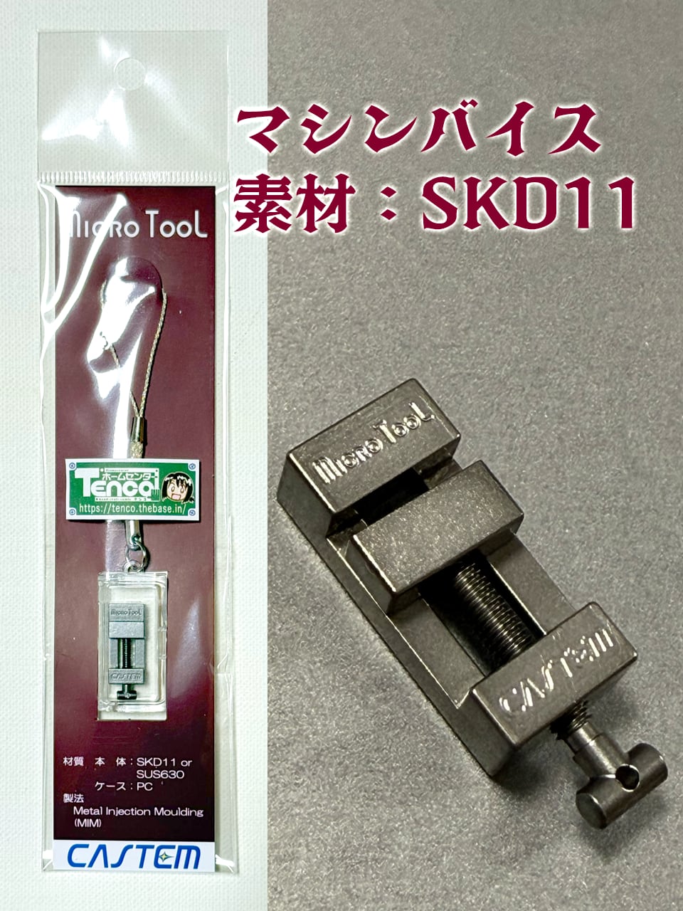 マシンバイス●小物の固定に実用可能。ハンドル部分に穴を設けました。素材はSKD11