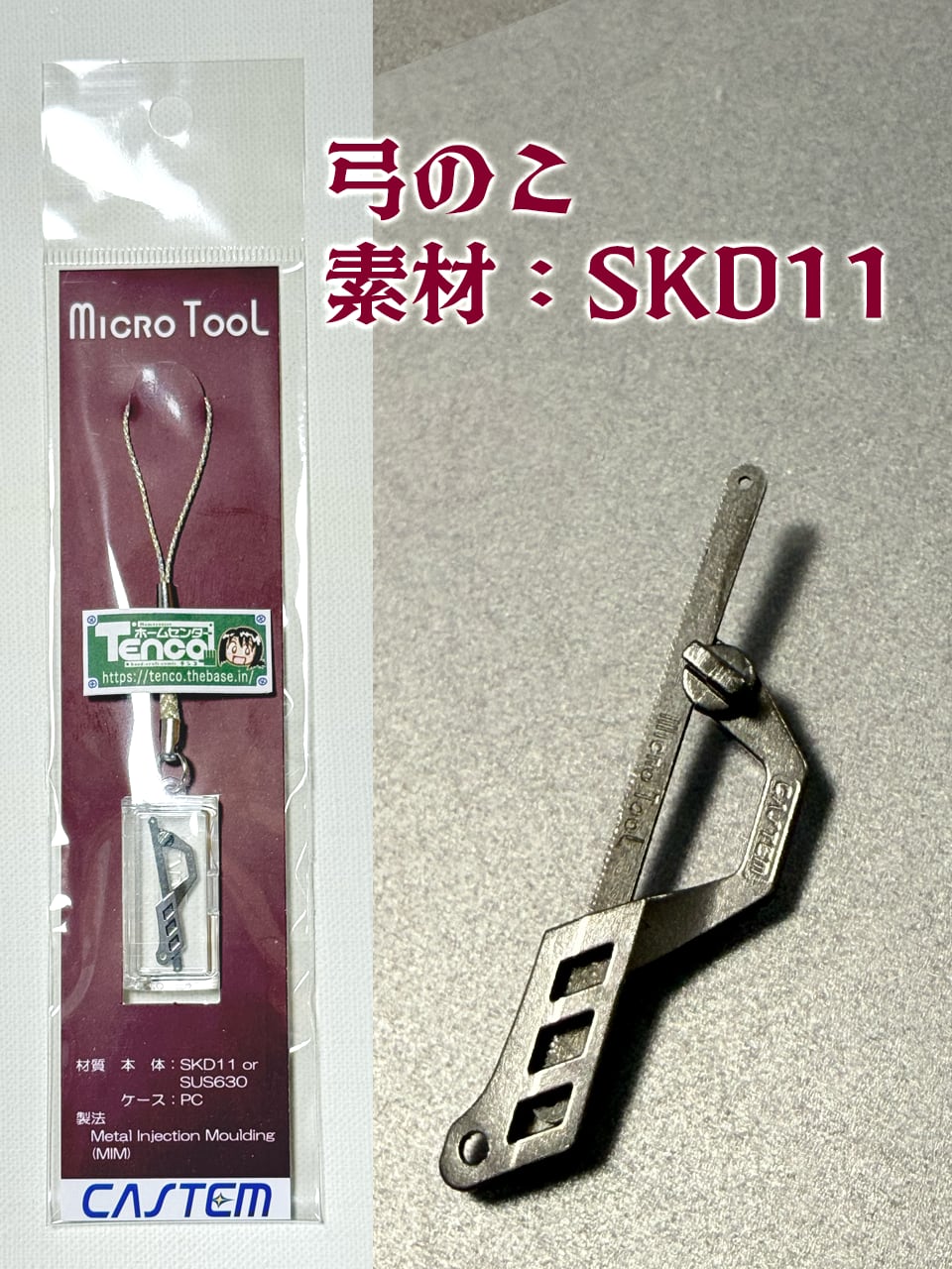 弓のこ●全く違った形状になり、刃がネジで止められるようになりました。刃の形状もリアルなギザギザになり、多少切れるように(?)。素材はSKD11